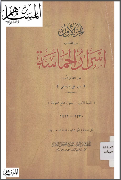 أسرار الحماسة ج 1 تأليف : سيد علي المرصفي