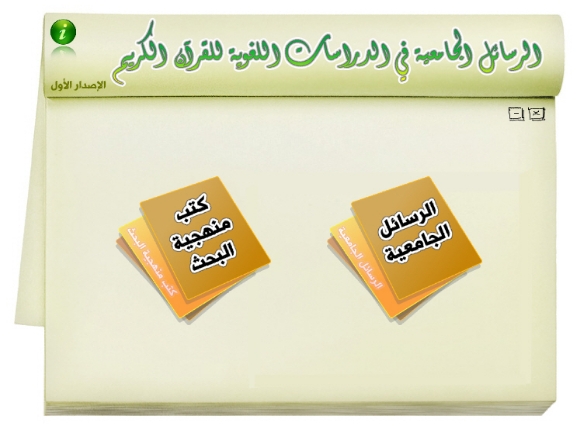 أسطوانة الرسائل الجامعية في الدراسات اللغوية للقرآن الكريم وصف البرنامج: أسطوانة ضمنتها مجموعة من الرسائل والأطاريح الجامعية التي تعلقت موضوعاتها بالدراسة اللغوية للقرآن الكريم، بالإضافة إلى مجموعة من الكتب والأبحاث في منهجية البحث العلمي.. 01_ من الرسائل العلمية : ( 134 ) رسالة علمية ، في الدراسات اللغوية القرآنية