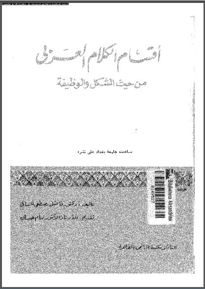 أقسام الكلام العربي من حيث الشكل والوظيفة تأليف : فاضل مصطفى السنافي مكتبة الخانجي القاهرة 1977م —– رابط التنزيل —–