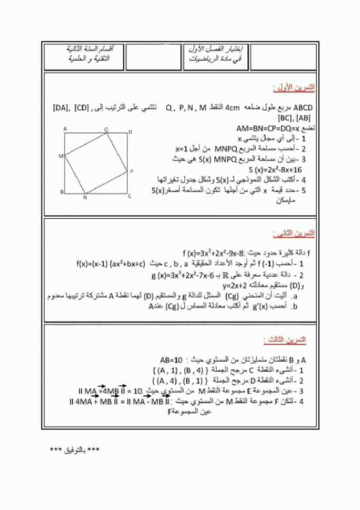 اختبار الفصل الأول في اللغة العربية للسنة ثانية ثانوي شعبة آداب و فلسفة النموذج 3