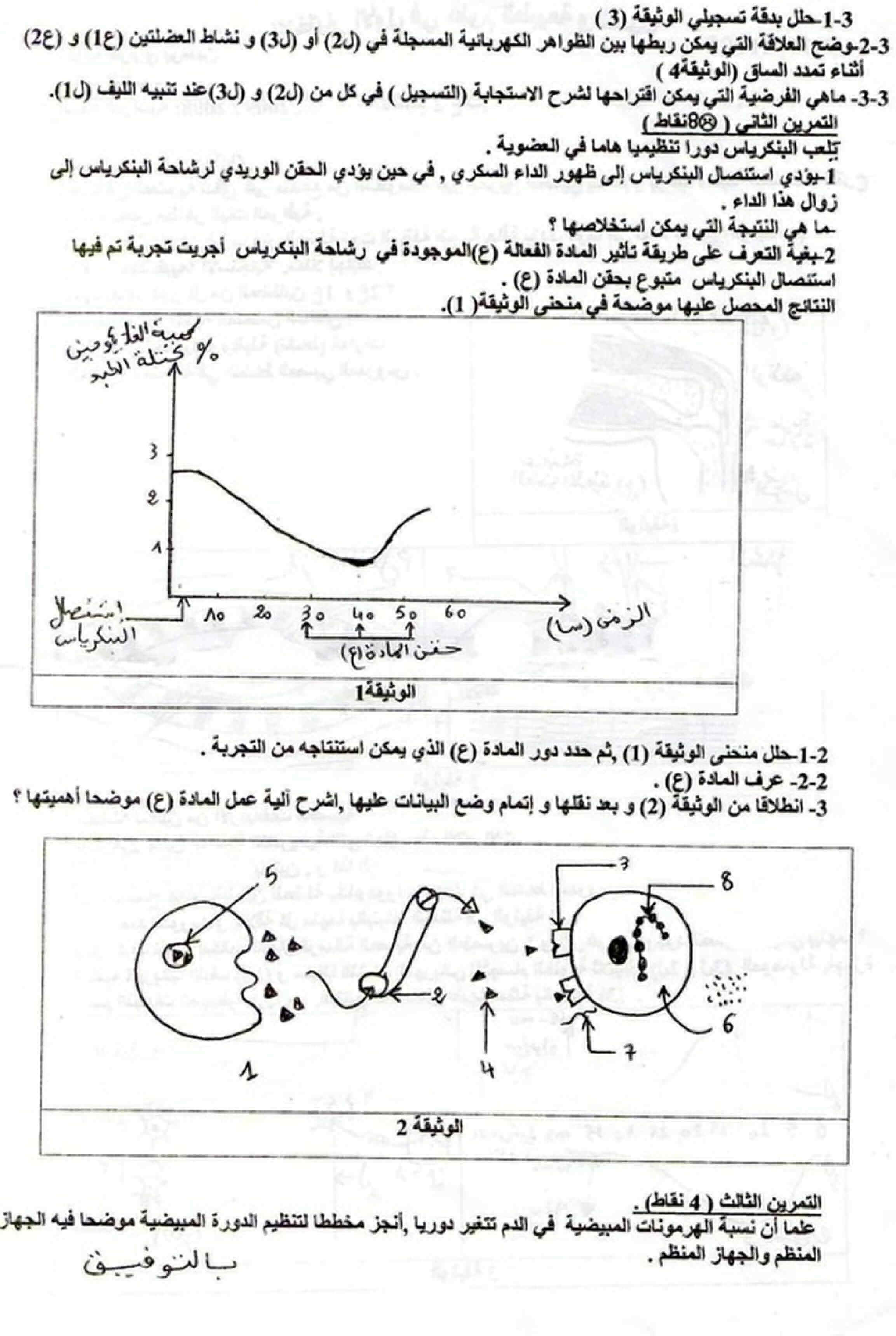 اختبار الفصل الاول في مادة العلوم الطبيعية للسنة الثانية ثانوي النموذج 3