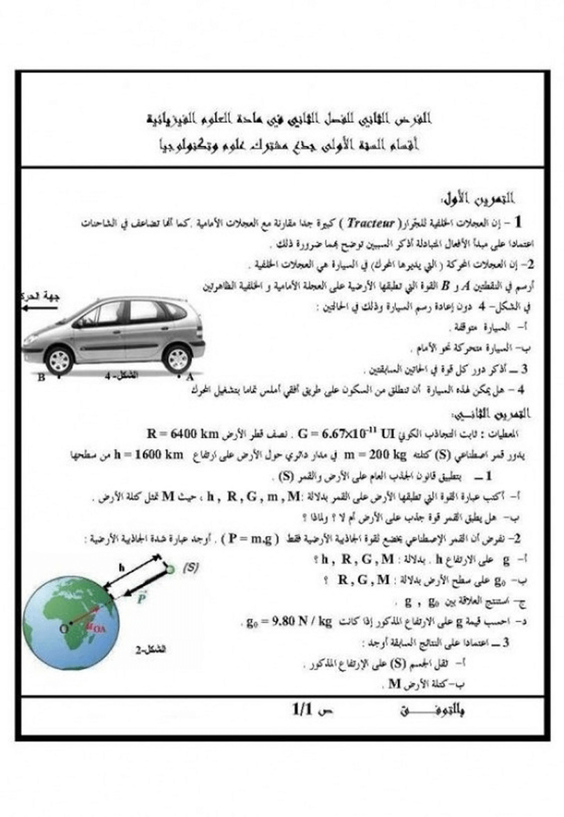 اختبار في مادة علوم فيزيائية الفصل 2 سنة أولى ثانوي نموذج 2 جدع مشترك علوم