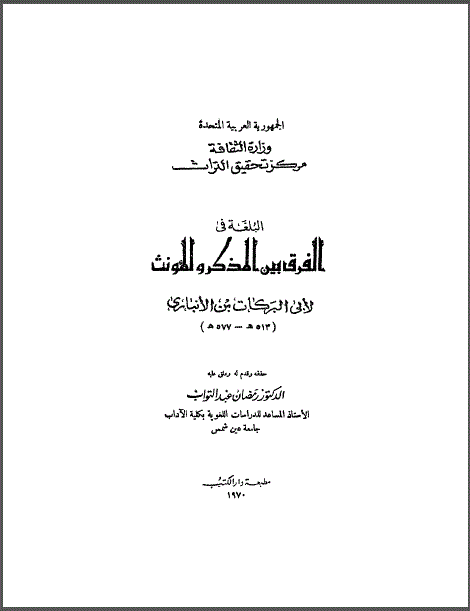 البلغة في الفرق بين المذكر والمؤنث – أبو البركات بن الأنباري