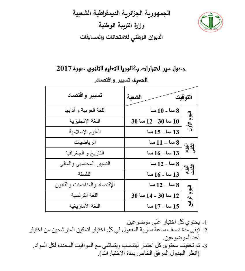 الرزنامة الجديدة لامتحان شهادة البكالوريا 2017