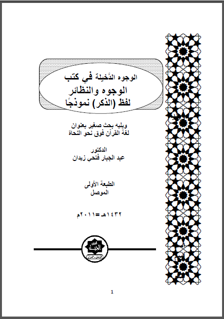 الوجوه الدخيلة في كتب الوجوه والنظائر لفظ ( الذكر ) نموذجا – عبد الجبار فتحي زيدان