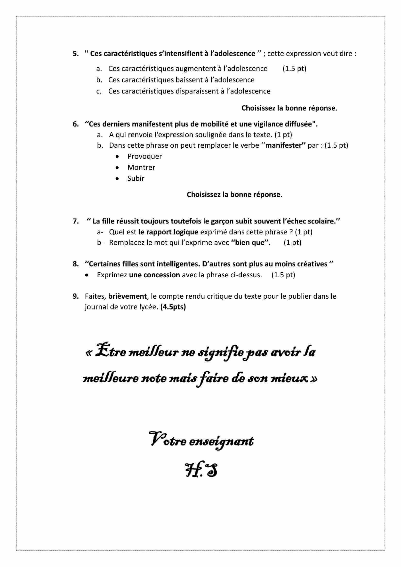 امتحان الفصل الثاني في مادة اللغة الفرنسية للسنة الثالثة ثانوي شعبة اداب و فلسفة