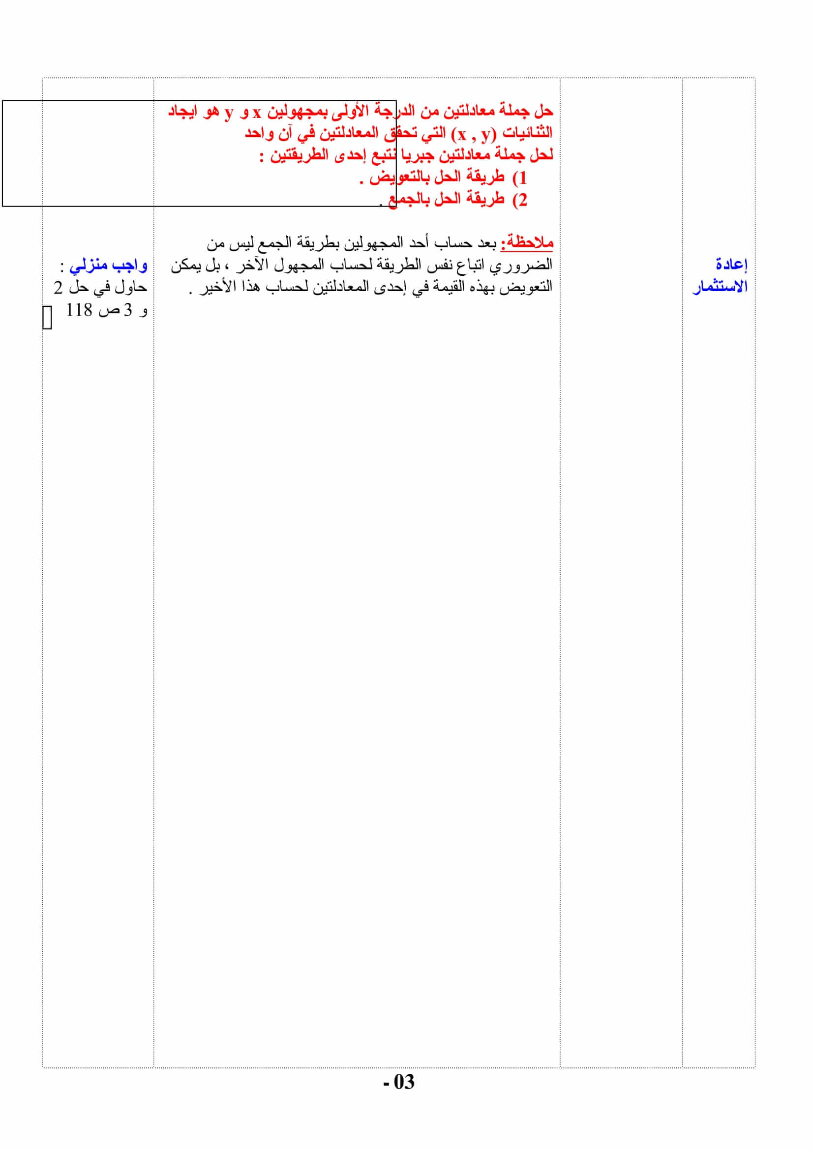 التعرّف على كيفية حل جملة معادلتين جبريا