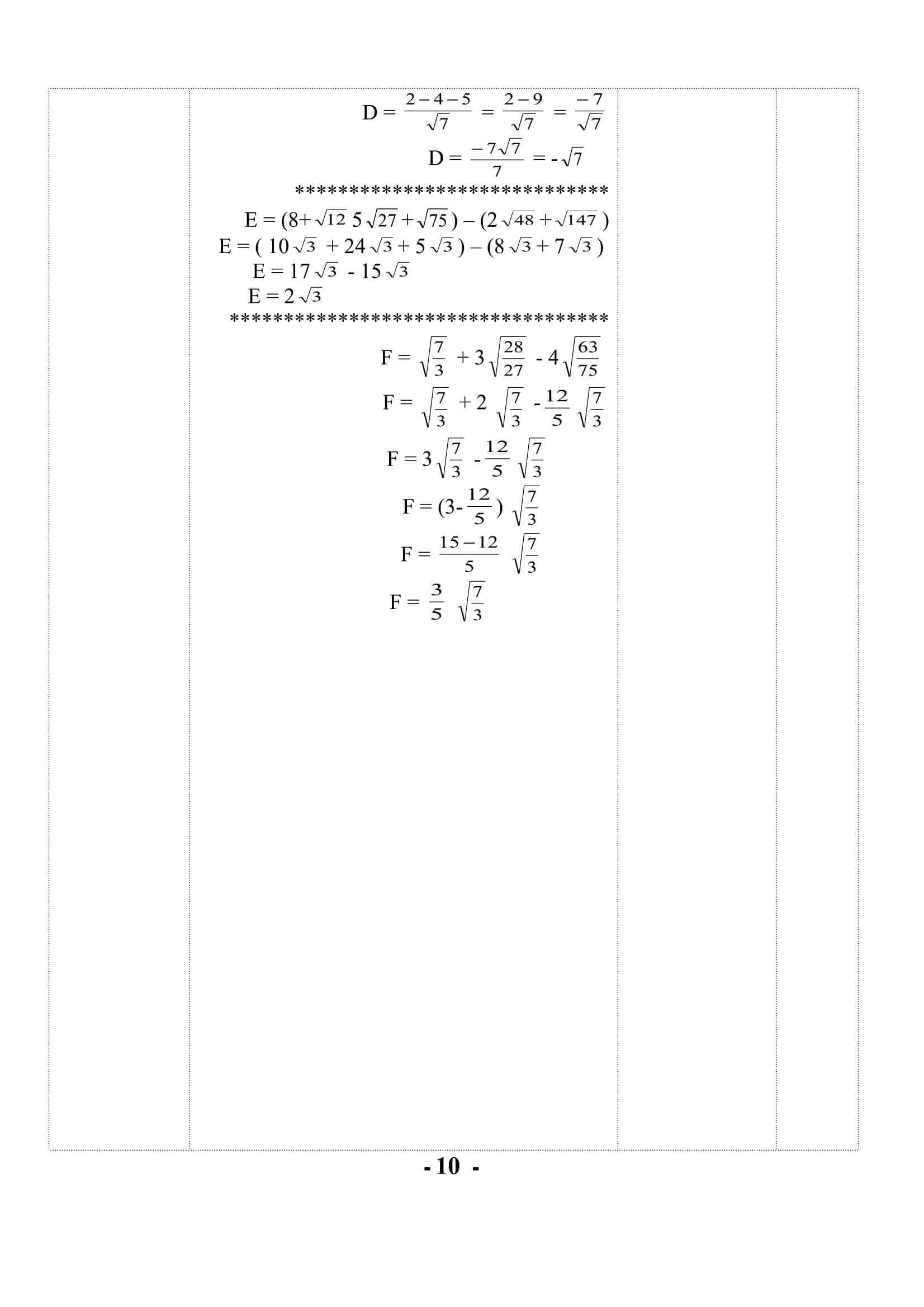 حل تمارين للبحث و التقويم في الحساب على الجذور للسنة 4 متوسط