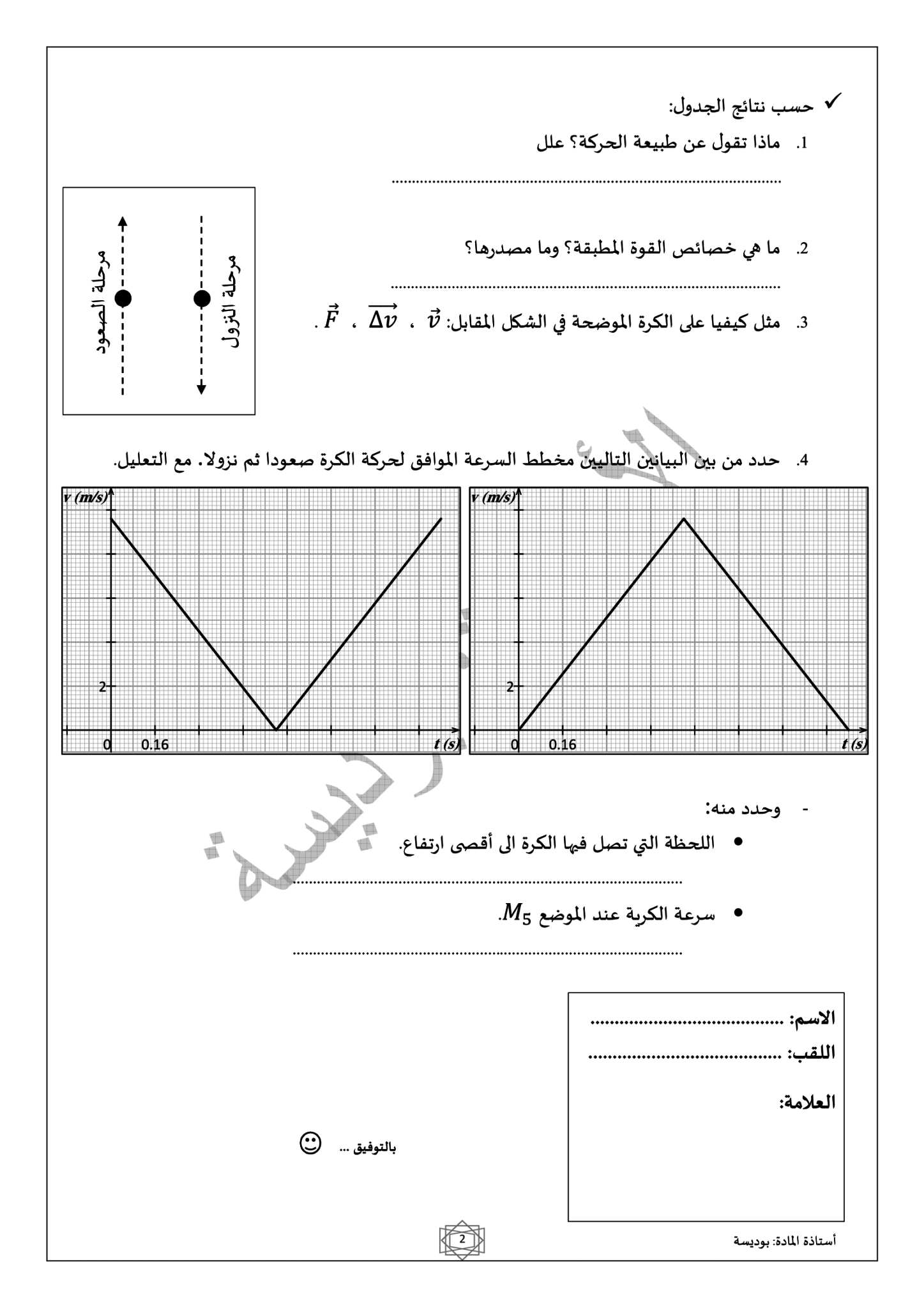 االفرض الاول للفصل 1 في مادة العلوم الفيزيائية مع التصحيح