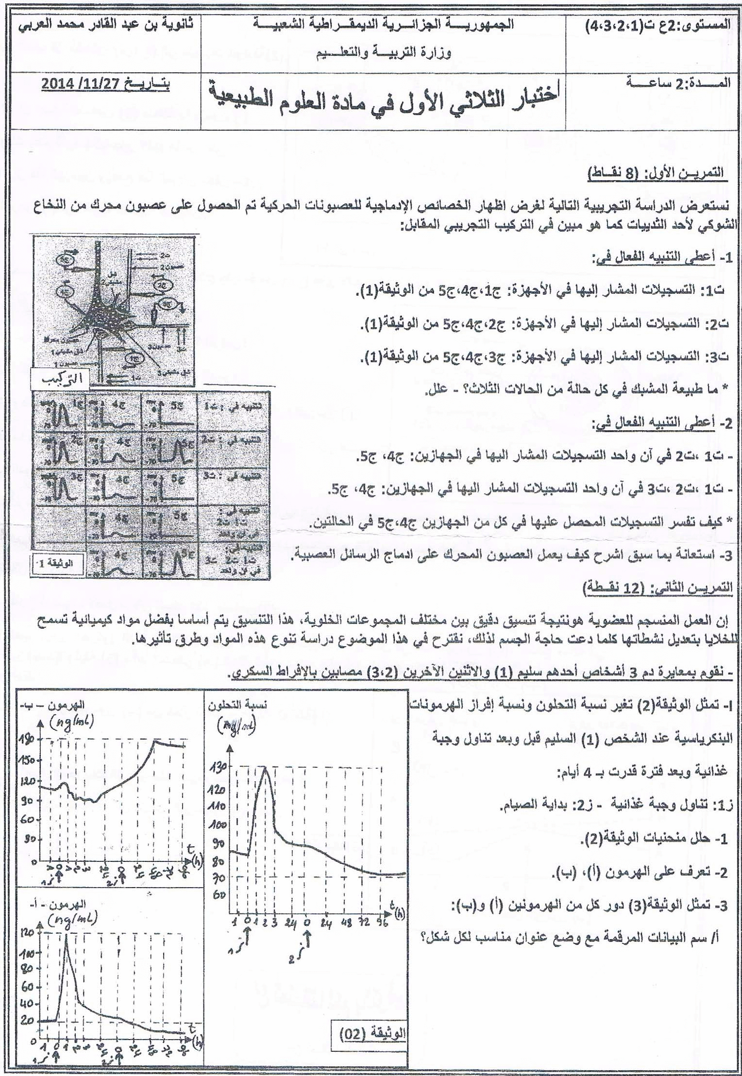 اختبار الفصل الاول في مادة العلوم الطبيعة الثانية ثانوي شعبة العلوم التجريبية النمودج السادس